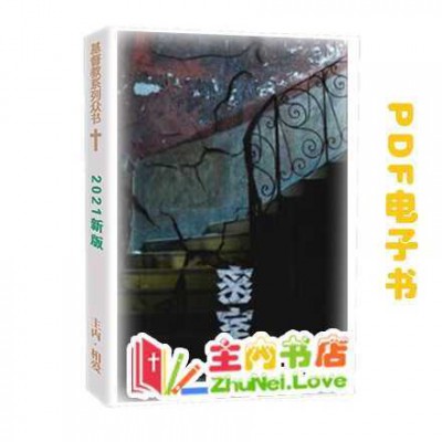 这是PDF电子书! 基督教电子书下载 主内电子书分享。 为方便检索与传播,本站使用电商格式展示,所有书籍价格为0,全部免费。本站所有书籍皆为主内肢体准备,免费供应。若有感动,可小额奉献,支持事工。 主内书店微信:ZhuNei-Love 或主内书店QQ:123880018 本电子书简介:本书简介:我们满怀欣悦地将这本《心灵鸡汤珍藏本》奉献在读者面前。我们知道,本书中的300多个故事会使你们爱得博大深沉,活得充满激情;会使你们更有信心地去追求梦想与憧憬。在面临挑战、遭受挫折和感到无望之时,这本书会给您以力量;在惶惑、痛苦和失落之际,这本书会给您以慰藉。毫无疑问,它会成为您的终生益友,持续不断地为您生活的方方面面提供深沉的理解和智慧。 特别申明:1,下单时,请在订单留言里,留下你的E-mail,我们会24小时内发送邮件。 2,PDF电子书,只适用于个人手机阅读,电脑阅读等。 3,本书有实物书,有电子书,本页面为电子书。 4,电子书有薄水印,不影响阅读。 实物书价格 = 电子书价格 x 5 《密室》电子书-个人传记 彭柯丽 24.31万字
